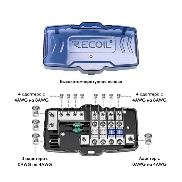 ОписаниеВысокопроизводительный 4-канальный мини-ANL предохранительный распределительный блок и заземляющий блок, каждый блок питания и заземления имеет 4 входа калибра 0/2/4, 4 выхода калибра 4/8.