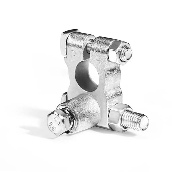 Одна пара стандартных клемм для верхней клеммы аккумулятора из цинкового сплава военного класса для максимальной электропроводимости, увеличения прочности и уменьшения коррозии.