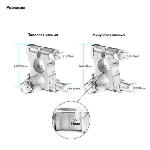 Диаметр клемм аккумулятора 17 мм; 19 мм