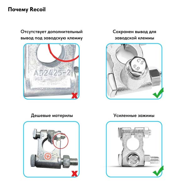 Конусные адаптеры для установки сверху идеально подходят для интеграции с OEM-оборудованием, при этом не нужно обрезать заводские клеммы для аккумулятора.Характеристики