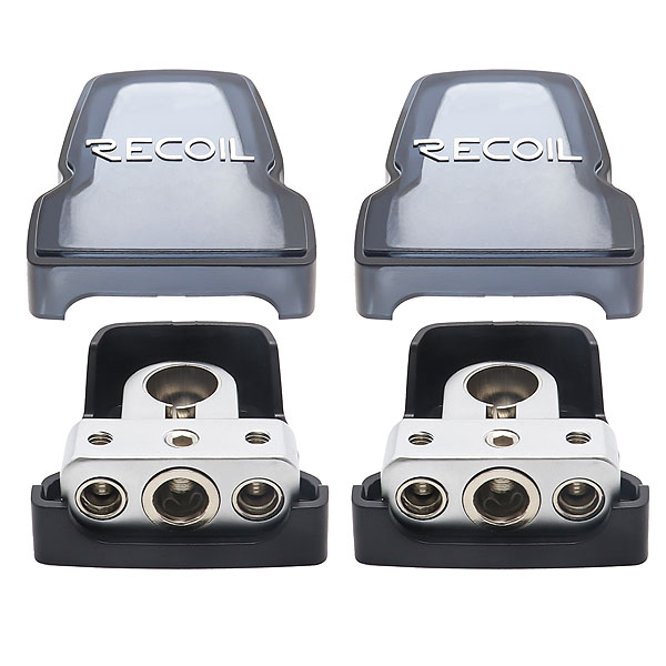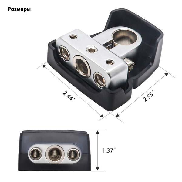 Каждая клемма аккумулятора разделяет соединение на три выхода: один выход 0/2/4 AWG и два выхода AWG 4/8.