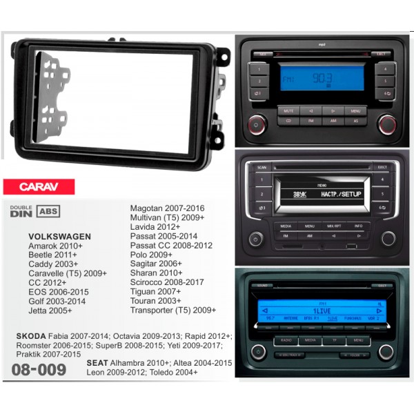 2-DIN монтажная рамка для а/м VOLKSWAGEN 2003+ / SKODA 2006+ / SEAT 2004+