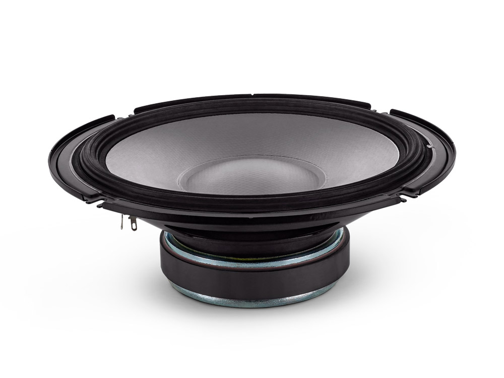 Высокоамплитудный подвес (HAMR) низкочастотного динамика обеспечивает наилучшее звучание низких частот, обеспечивая максимальное перемещение диффузора. Купольный твитер диаметром 2,5 см (1 дюйм) обеспечивает все высокочастотные характеристики, которых вам не хватало в штатных динамиках.