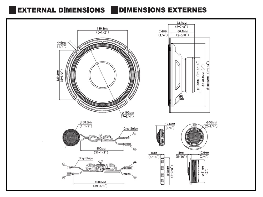 Акустика Alpine S-серии доступны в коаксиальной и компонентной конфигурациях и бывают самых разных размеров, таких как 20 см, 16,5 см, 13 см, 10 см, 6x9 дюймов и 6x8 дюймов.