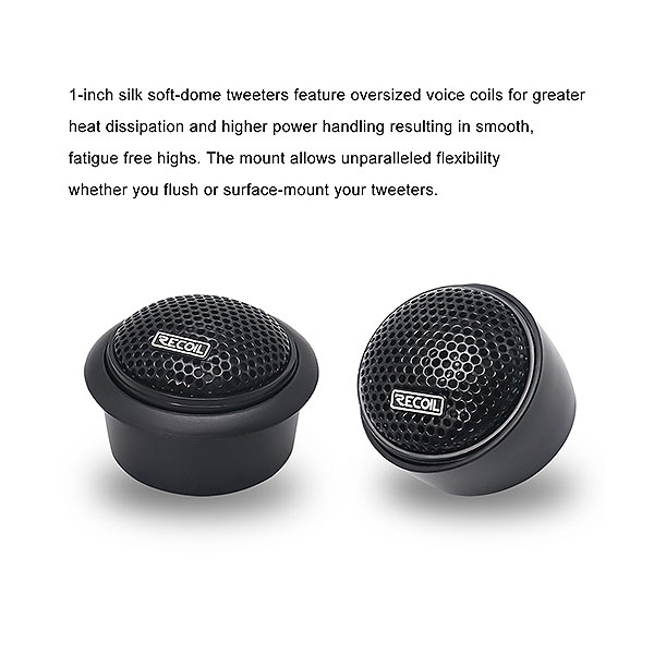 Высокая производительность твитеров обусловлена 1-дюймовый шелковым куполом и неодимовым магнитом — подойдет как под магнитолу так и под усилитель.