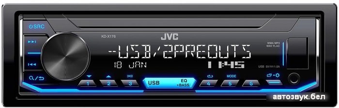 1DIN, USB-проигрыватель, USB, усилитель 4x50 Вт, экран монохромный