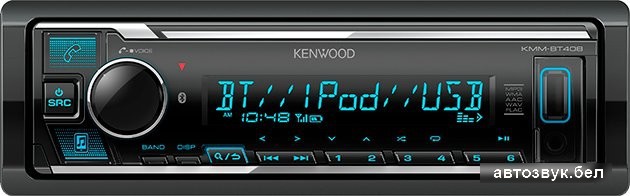 Общая информация Информация Автопроигрыватель Kenwood KMM-BT408 обращает на себя внимание наличием модуля Bluetooth, с помощью которого можно не только осуществлять беспроводное воспроизведение, но и пользоваться телефонной связью без помощи рук. Используя линейный вход и порт USB, вы сможете подключать мобильные устройства проводным способом. Модель совместима с Android, iPhone и iPod.