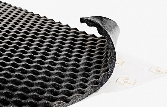 ОписаниеРазмер листа: 0.75х1 толщина: 20мм. Высокоэффективный звукопоглощающий материал; состав: вспененный полиуретан с клеевым слоем, защищенным антиадгезионной пленкой; свойства: эффективное звукопоглощение благодаря особой рельефной структуре, долговечен, стоек к внешнему воздействию, легко монтируется на изогнутые поверхности, дополнительно устраняет скрипы пластика; благодаря вязкой структуре, активно гасит вибрации панелей автомобиля; применение: второй слой на задние арки, крышу, пластиковые обшивки салона.