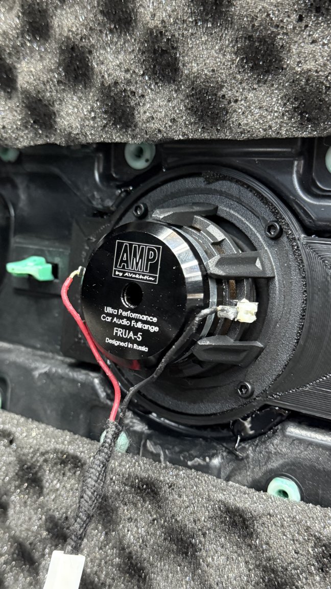 Дальше — новая акустика и усиление как связанный комплекс: фронт получает разделение полос и нормальную посадку в двери, задний план подключён так, чтобы салон звучал цельно, без ощущения «хорошо спереди и пусто сзади». Здесь важны не только динамики, но и жёсткость крепления, герметичность, аккуратная разводка — иначе даже дорогие говорители остаются «плоскими».