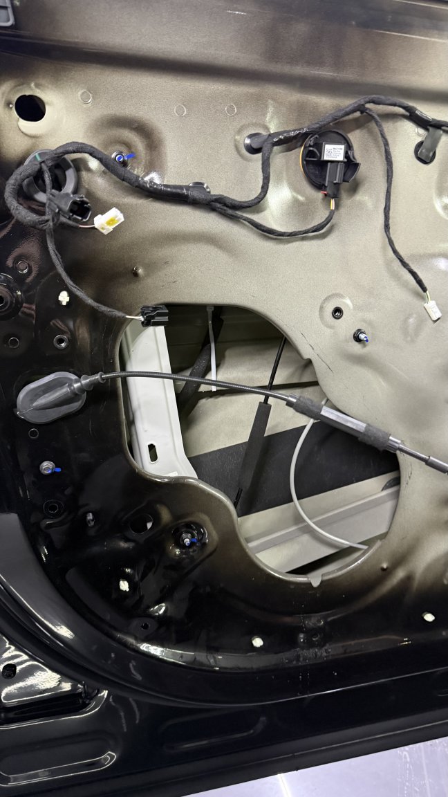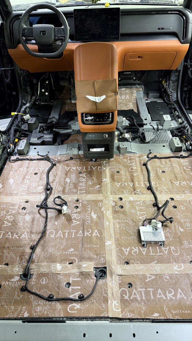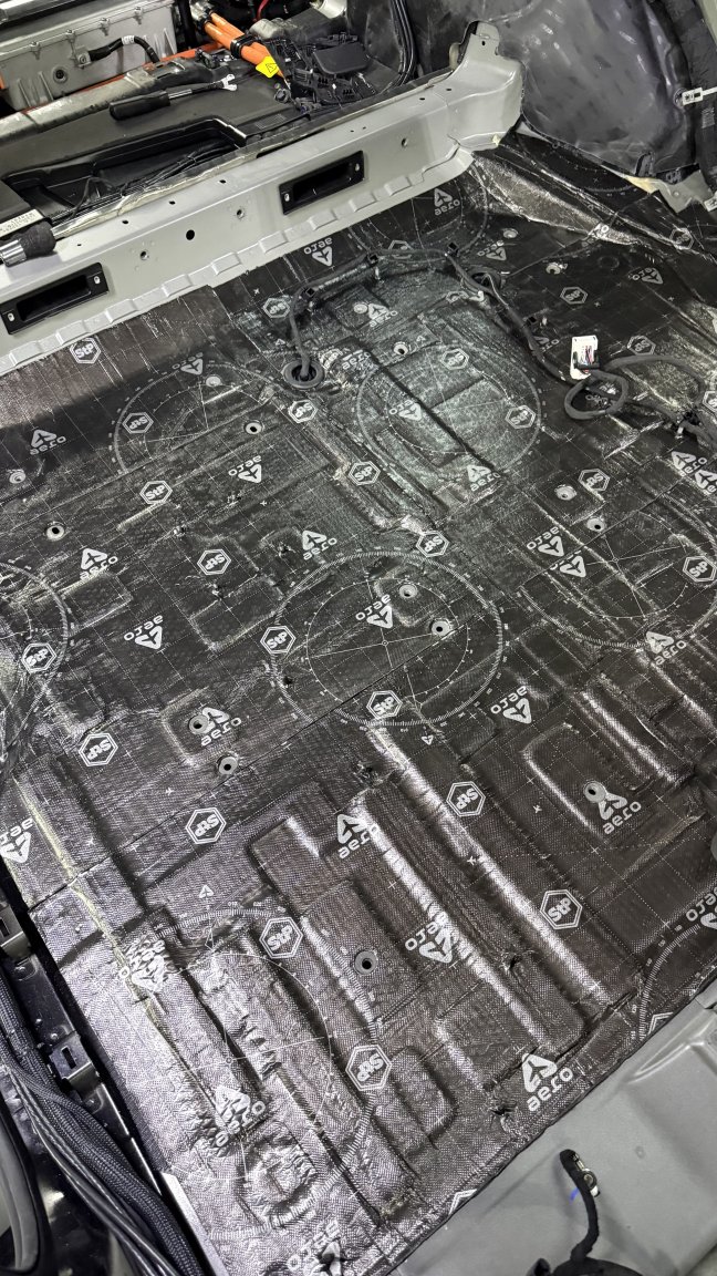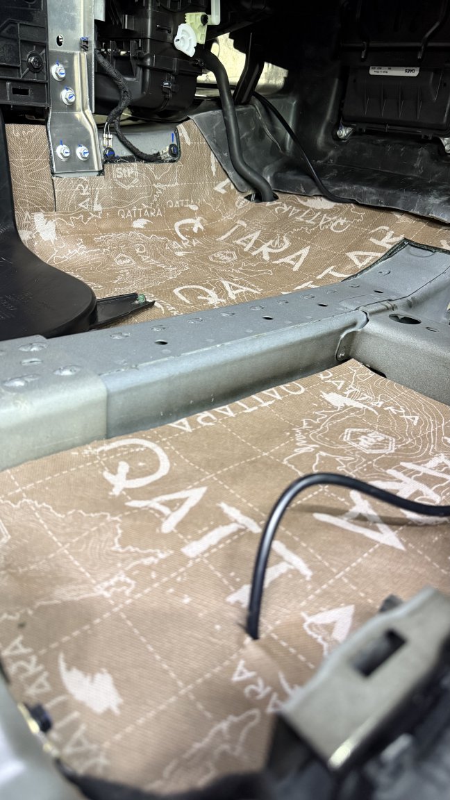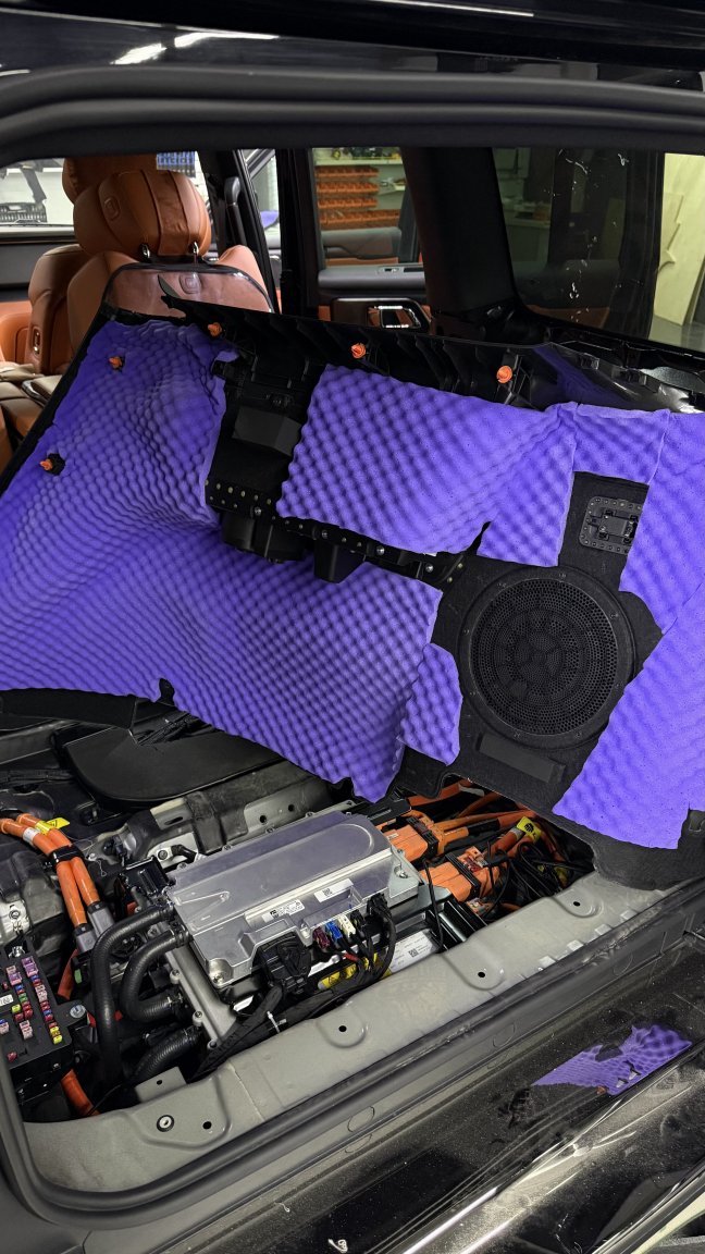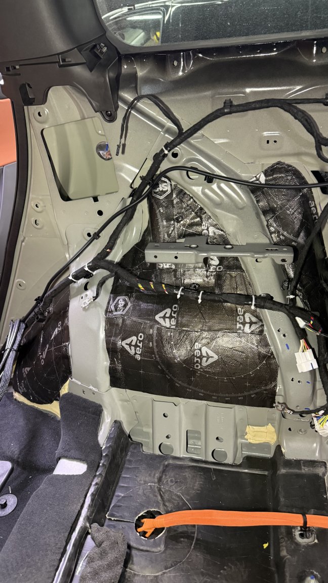 Мы сделали полную шумоизоляцию премиальными материалами STP по смысловым зонам кузова: демпфирование жёстких панелей, развязка резонансов, поглощение пустот и работа с трактами, через которые в салон проходит дорога. Задача этапа простая по смыслу и сложная по исполнению: снизить фон, чтобы дальнейшая акустика не боролась с шумом, а раскрывалась.